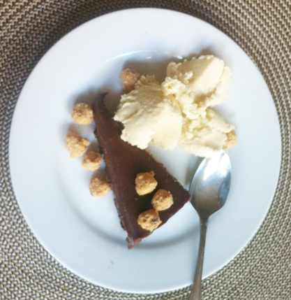 Čokoládový dortík se zmrzlinou a lískovými oříšky